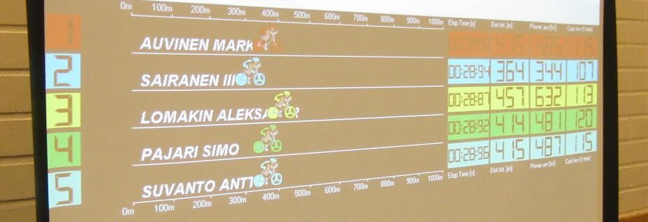Гонка проводилась в просторном спортзале спа-отеля Иматры с прекрасной вентиляцией. В зале установили 10 тренажеров, 5 из которых были предназначены для соревнования, а остальные - для разминки. Вообще вся организация мероприятия была проделана на отлично: меня дружелюбно встретили, познакомили с оборудованием, все рассказали и показали, регламент соблюдался идеально. Участников гонки было не много - даже зрителей в зал пришло больше - однако спортивный азарт присутствовал в полной мере, чему в том числе способствовал комментатор заездов. Основная мужская категория ехала в два заезда по 5 человек в каждом.